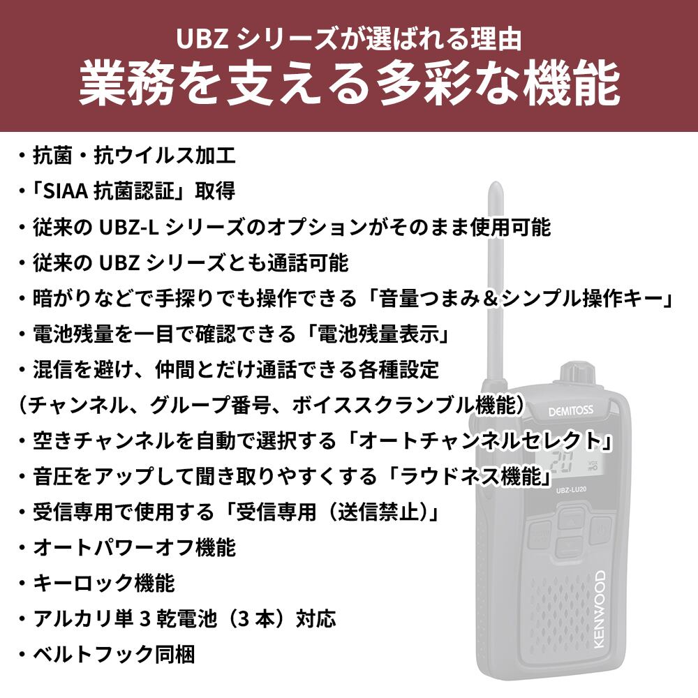 JVCケンウッド 中継機対応 特定小電力トランシーバー UBZ-LU27 デミトス (UBZ-LS27R 後継機種)